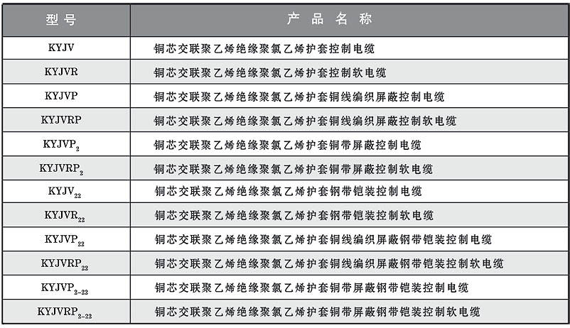 控制电缆外径规格型号一览表,控制电缆规格型号含义