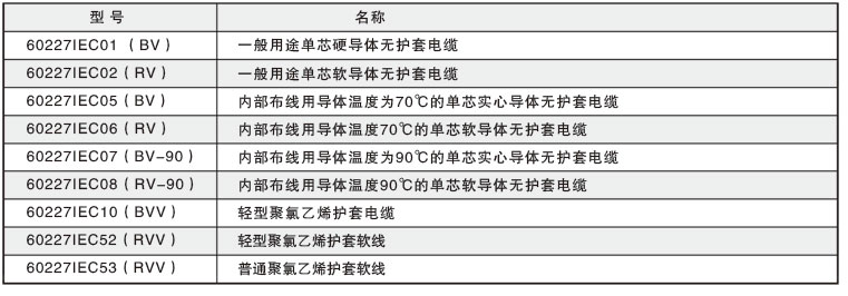 60227IEC ………………………………………………………………………………………………… 系列代号