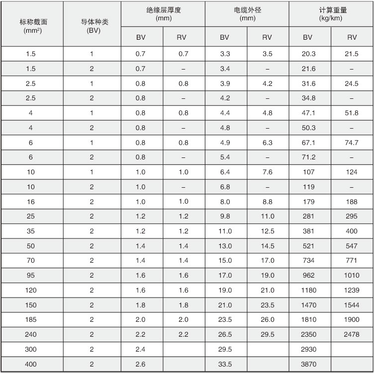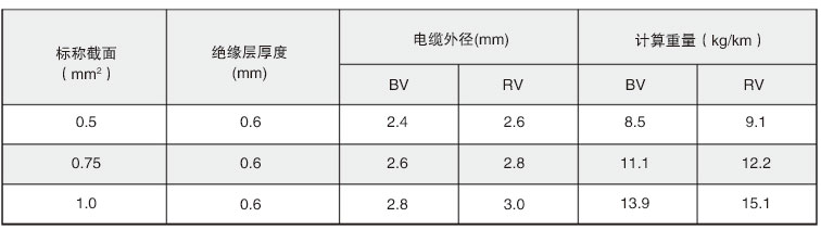 表 1 60227IEC01(BV) 60227IEC02(RV)