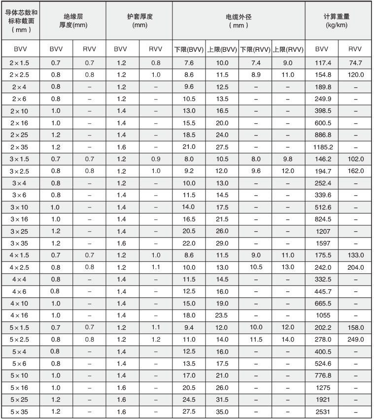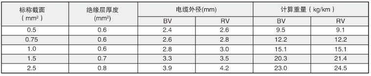 绝缘电缆型号规格参数表